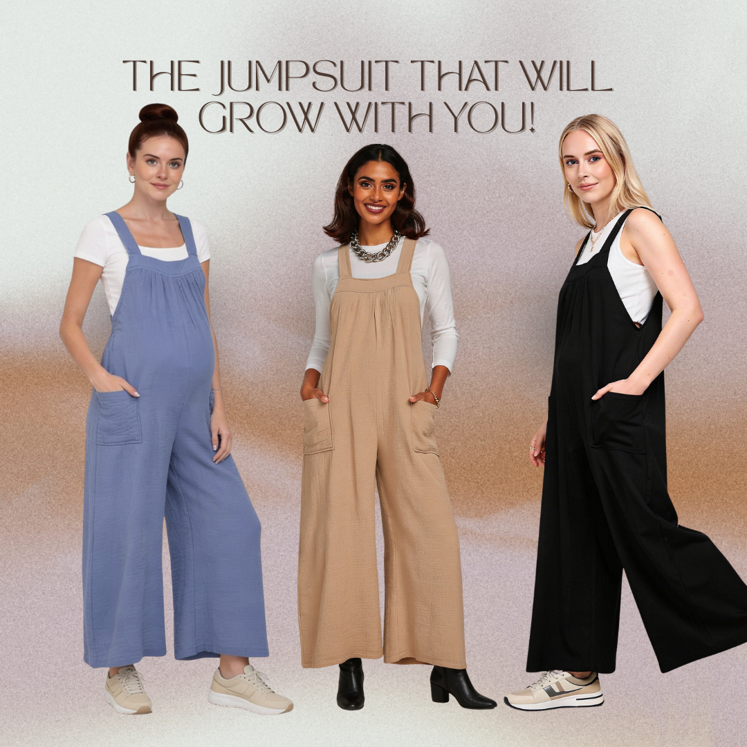This oversized jumpsuit was designed to grow with you... through the bump, into postpartum, and long after baby arrives. With a relaxed fit and adjustable straps, they move with your body instead of working against it.